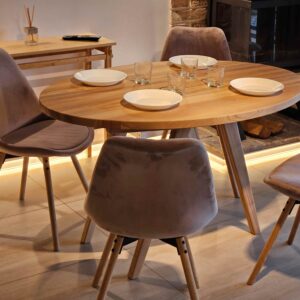 Bring organic elegance into your home with this oval solid wood transformer table. Adjustable height lets you switch from a refined coffee table to a full dining setup. Handmade with natural finishes, it’s perfect for cozy, contemporary interiors.