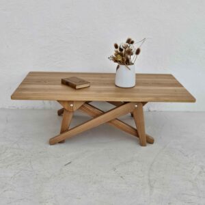 Bring timeless elegance and flexibility into your home with this natural oak transformer table. Adjustable height allows it to shift effortlessly from coffee table to dining table. Handcrafted sustainably for modern, conscious living.