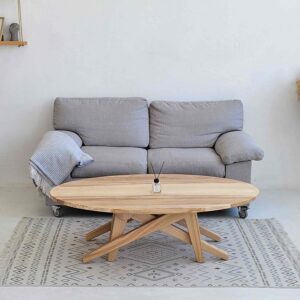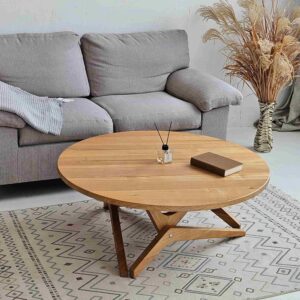 Embrace everyday adaptability with this solid oak 2-in-1 coffee table. Round, height-adjustable, and folding, it seamlessly transitions from coffee table to dining table. Handcrafted from sustainable oak for eco-friendly, stylish living.
