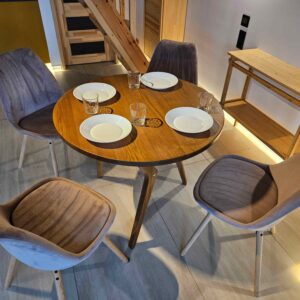 Combine nature’s beauty with modern craftsmanship through this round oak transformer table. Adjustable height, epoxy resin accents, and solid wood construction create a stunning, multifunctional centerpiece for stylish and sustainable homes.