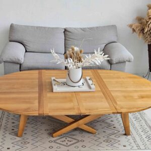 Round Solid Wood Transformer Table – Adjustable Height Expandable Coffee and Dining Table