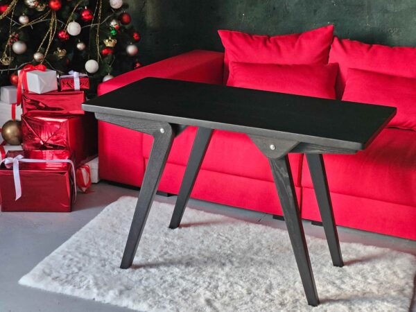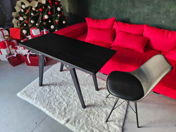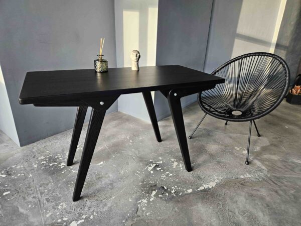 The bold black finish is achieved using eco-friendly, breathable oils that protect and deepen the grain, allowing the material’s true character to shine.