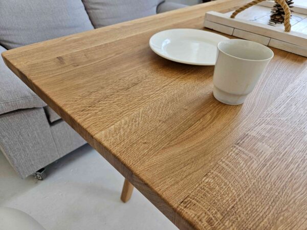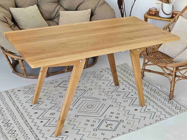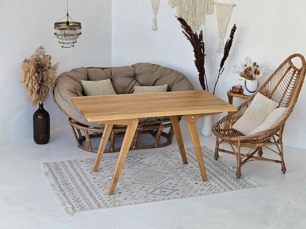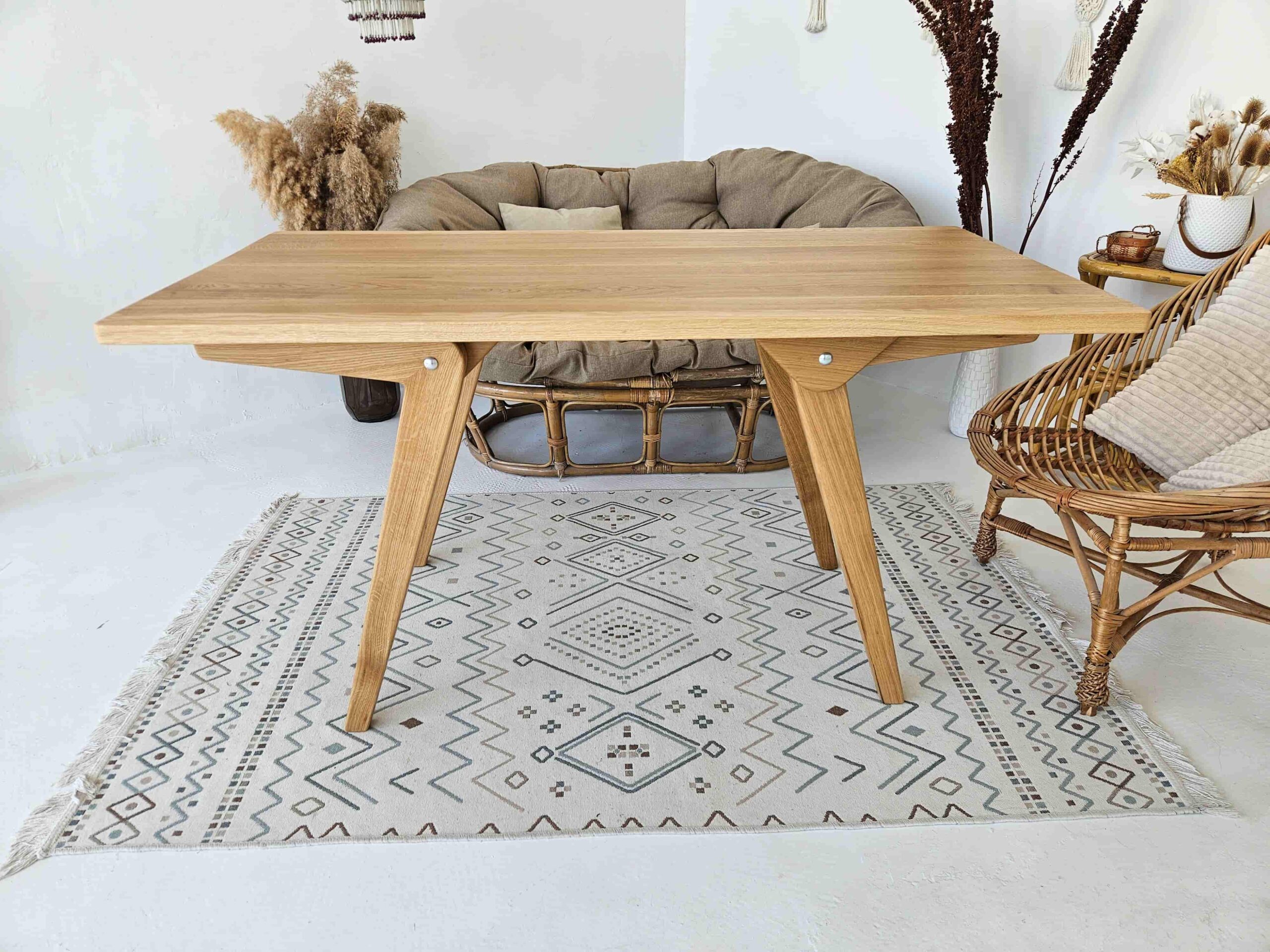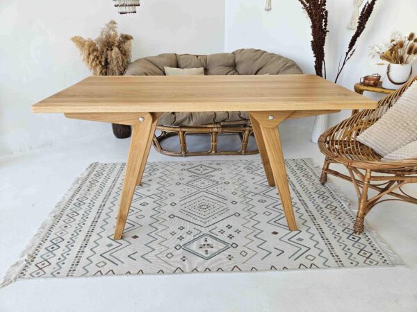 Each table is meticulously handmade by skilled artisans using solid oak or ash wood. These premium materials are carefully selected for their natural beauty, strength, and character. Every tabletop showcases unique wood grain patterns, making each piece one of a kind.