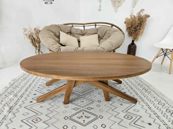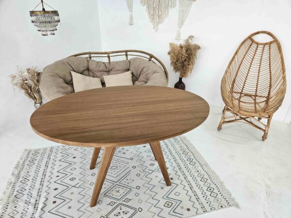 Its oval shape fits beautifully in open layouts or cozy rooms, without harsh corners — just welcoming curves.